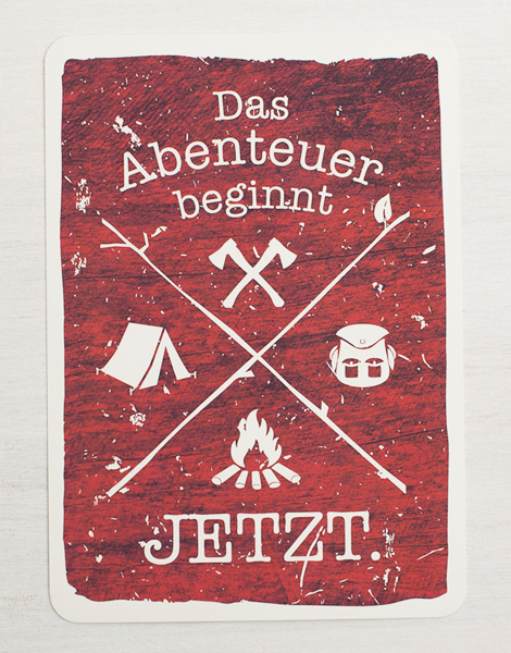 Los geht‘s! Jetzt Abenteuer, macht das, wovon ihr schon immer geträumt habt. Wenn nicht jetzt, wann dann! Ab dafür! MunkenPure Designpapier Postkarte: A6 Grammatur: 300m2