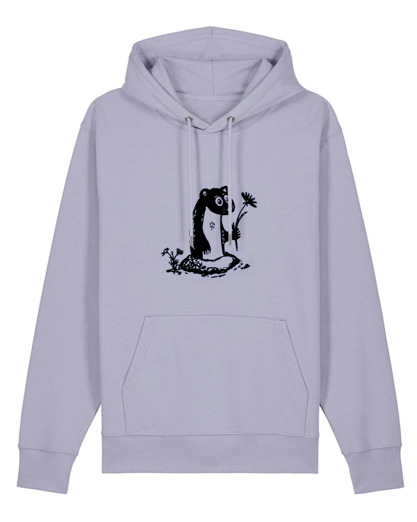 Das süße Erdmännchen auf weichem lavendelfarbenem Unisex Hoodie. Der Hoodie ist gemütlich und innen schön weich.