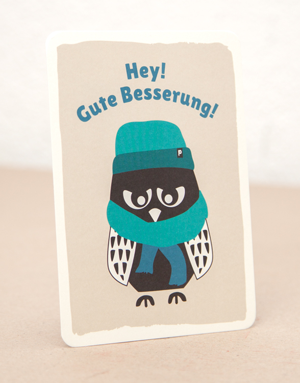 Hey, gute Besserung Eule! - Postkarte - Beige