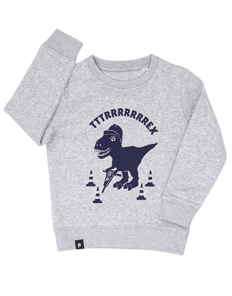 Theo Tttrrrrex der Bauarbeiter Dino - Fair Wear Kinder Sweater - Grau/Blau